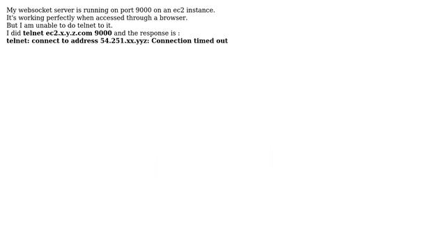 DevOps & SysAdmins: Unable to do telnet on websocket server