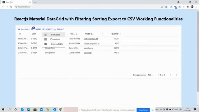 Reactjs Material Data Grid with Filtering Sorting Export to CSV Working Functionalities