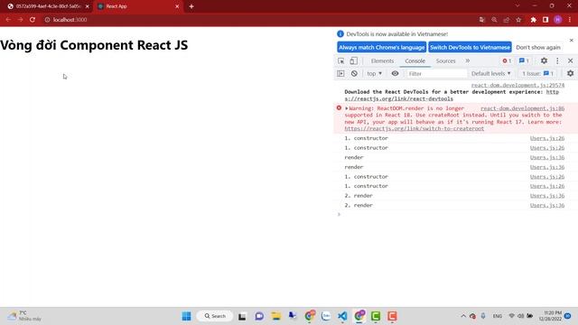 Khoá học ReactJS 2022: Bài 20 - Vòng đời Component (Component Lifecycle) trong React JS