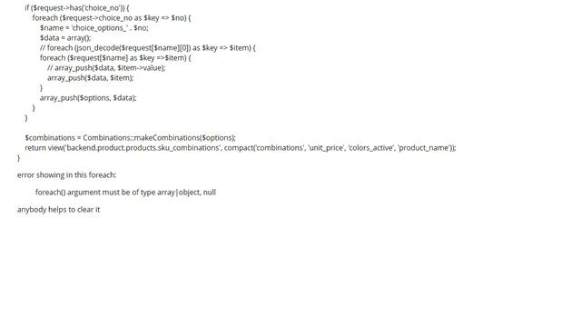 foreach() argument must be of type array|object, null given in laravel (1 answer)