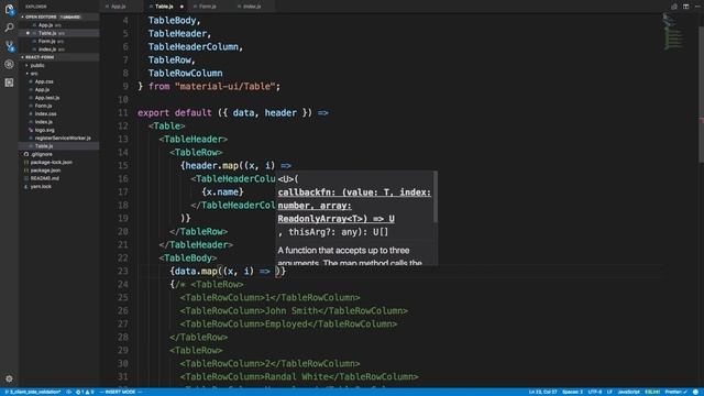 Material UI Table in React