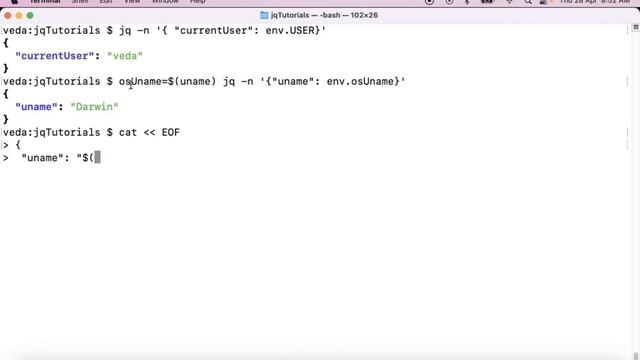 Jq env object to read OS Environment & Custom Variables | Creating Custom object with env object