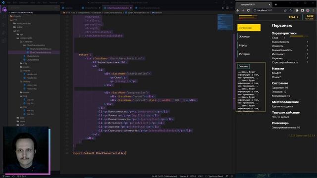 #35 // Разработка React RPG Cyberpunk игры // Стилизуем и вводим ProgressBar // Junior + || Middle