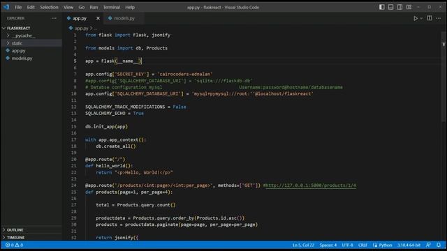 React js Python Flask Mysql Show Product List with pagination Next Prev