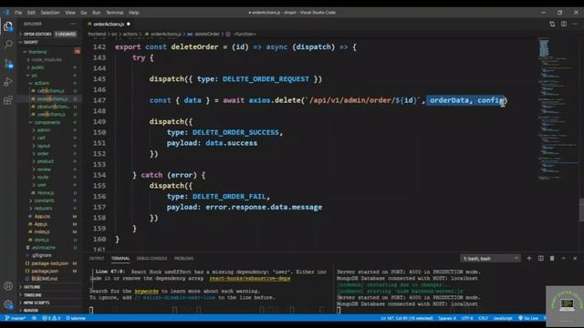 React js Tutorial # 101|How to Delete Orders in ReactJs |E-Commerce site