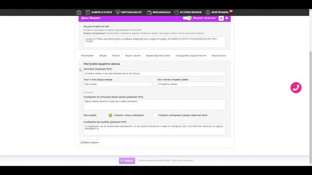 Виджет обратного звонка