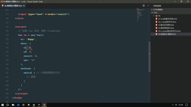 vue js 十一天教程 入门加实战 day 1 15 使用v model实现计算器的案例