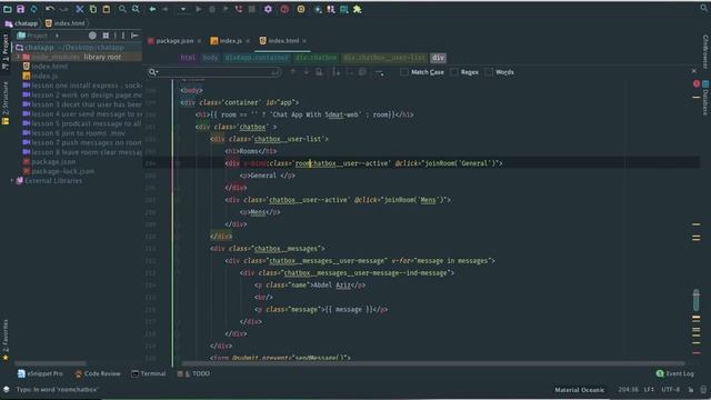 realtime chat app vuejs socket io lesson 9 Change class and join default room