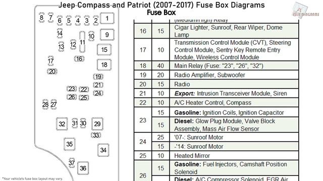 Jeep Compass and Patriot (2007-2017) Fuse Box Diagrams