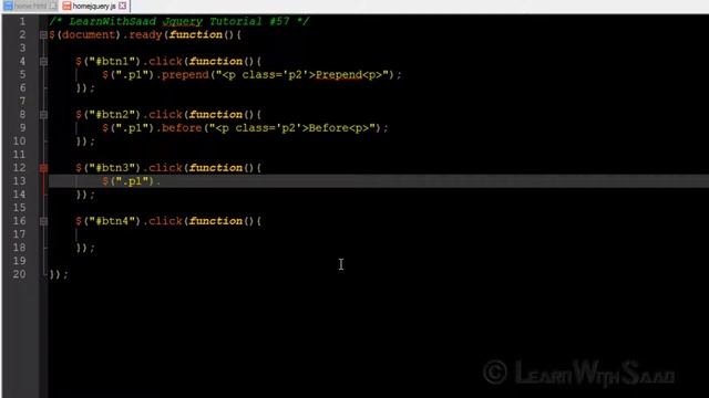 JQuery-57 Prepend() Vs Append() Vs Before() Vs After() in Hindi/ Urdu - LearnWithSaad