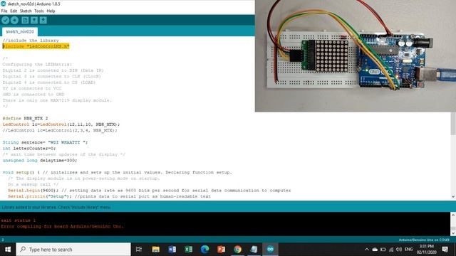 DISPLAYING STRING TO 8X8 LED MATRIX WITH MAX7219 USING ARDUINO MODULE