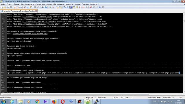 Установка Игровой Панели Управления EngineGamesPanel + Настройка Локации на отдельной машине