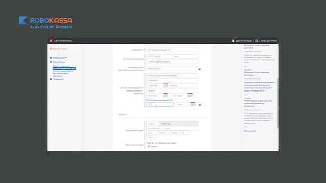 Заполнение личного кабинета Robokassa.kz