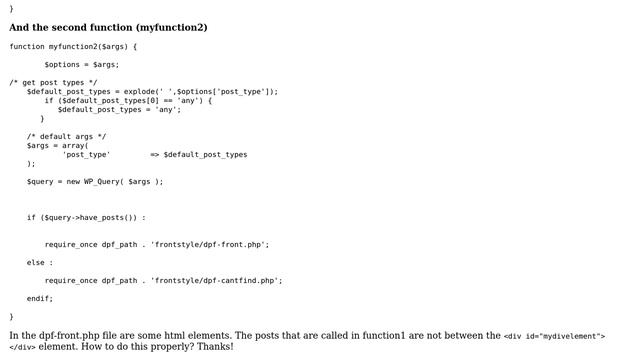 Wordpress: Query function not executed between <div> element