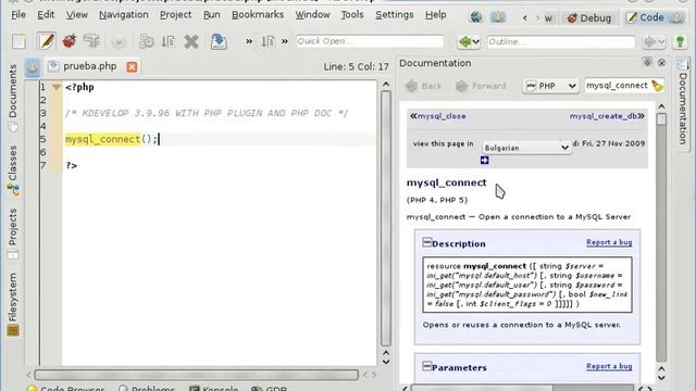 kdevelop4 v3.9.96 con plugin PHP beta1