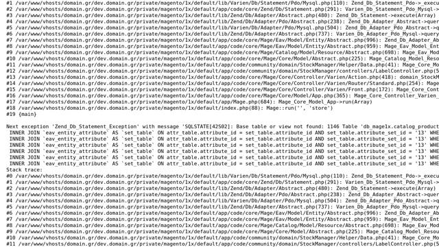 Magento: Base table or view not found: when loading product