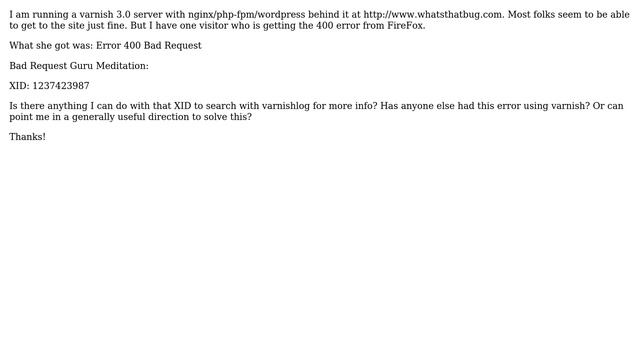 DevOps & SysAdmins: Varnish cache throwing 'Error 400 Bad Request' (2 Solutions!!)