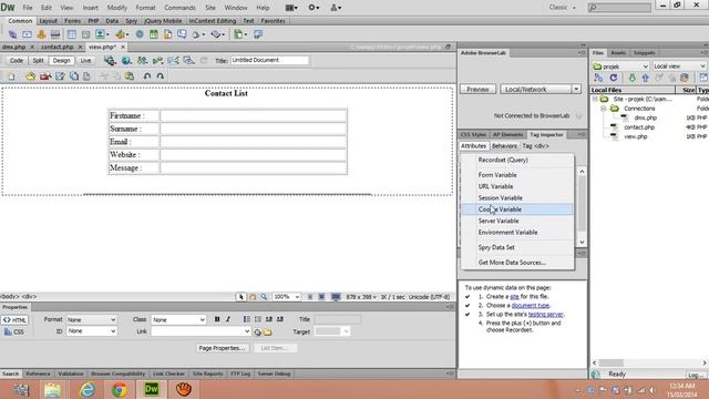 How to create view page using PHP in Dreamweaver CS6