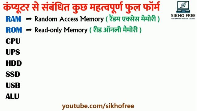 Computer Related full form of RAM ROM, CPU UPS, HDD SSD, USB, ALU ka full form kya hota hai in Hind