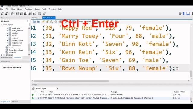 Creating sample MySQL student table using SQL dump in Workbench