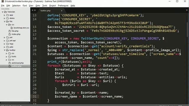 Twitter api in php part4: Show statuses