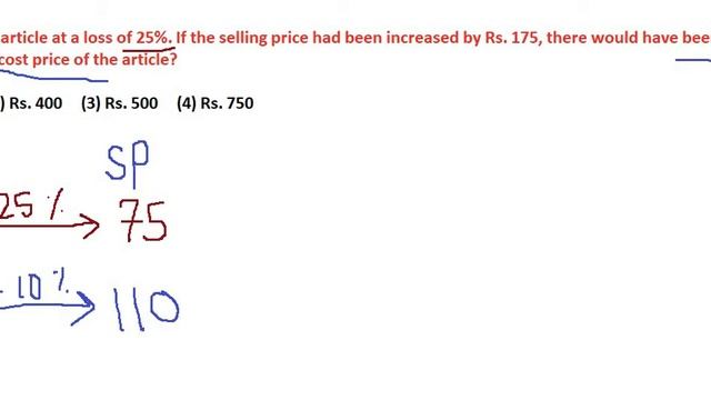 Profit and Loss: Sanjay sold an article at a loss of 25%. If the selling price had been increased b