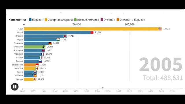 ТОП-15 стран мира по ВВП (ППС) 1990-2019