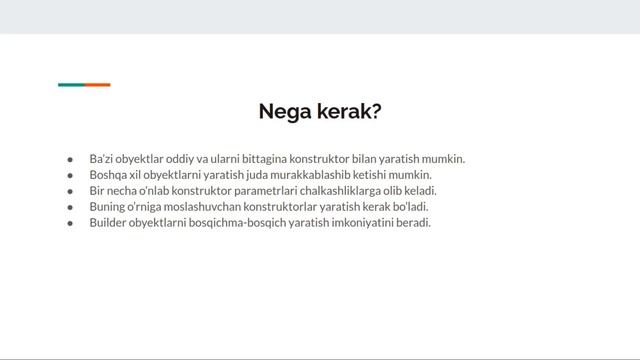 Builder - Kirish (Creational Design Patterns) - Design Patterns (Uzbek)