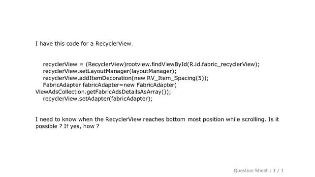 Android : Detect when RecyclerView reaches the bottom most position while scrolling