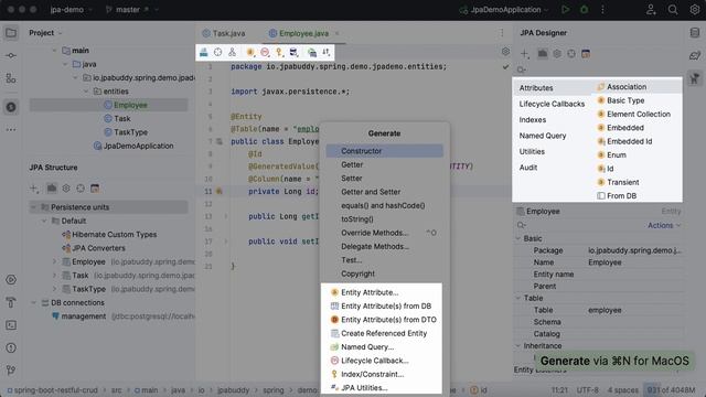 Generate JPA entities, attributes, associations & utility methods in Java with JPA Buddy