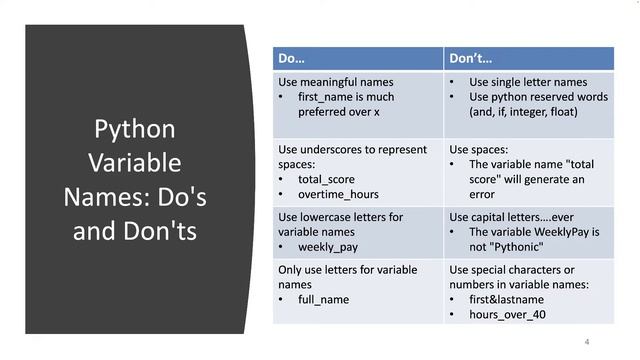 Variable Names and Types