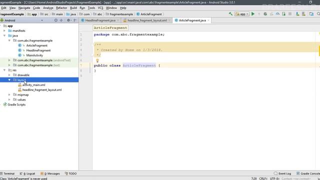 Android tutorial (2018) - 10 - Add a Fragment to an Activity using XML
