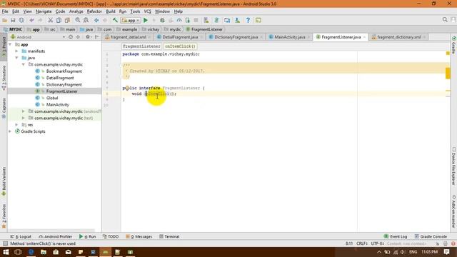 How to create awesome dictionary app in android (STEP 3.1 Handle event from Fragment in activity)
