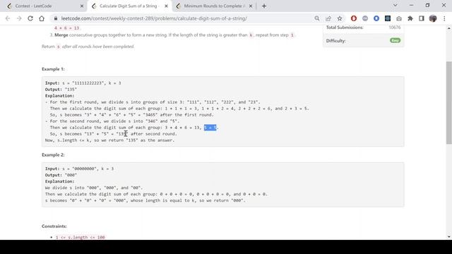 Leetcode Weekly-contest-289 - Calculate Digit Sum of a String