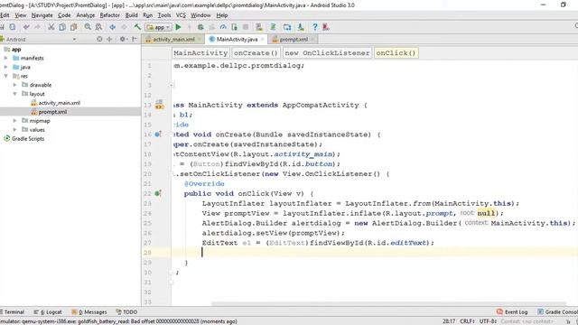 Prompt Dialog box in Android studio