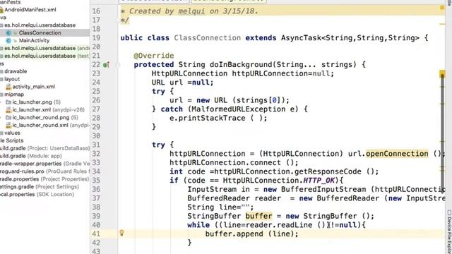 Android Studio - Conexión a Web Service - HttpURLConnection - JSON (obtenerDatos) (video 1)