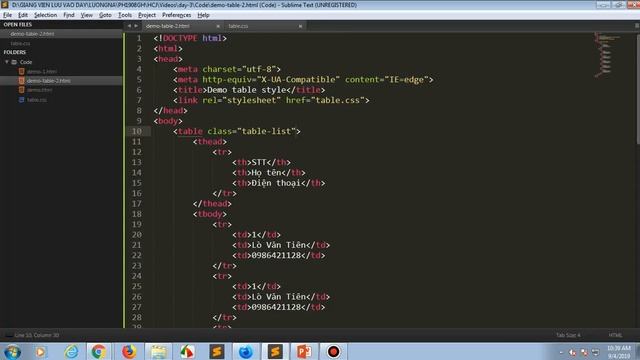 HTML5 - CSS3 - Javascrip & Bootstrap css bài 14 - Css style cho table