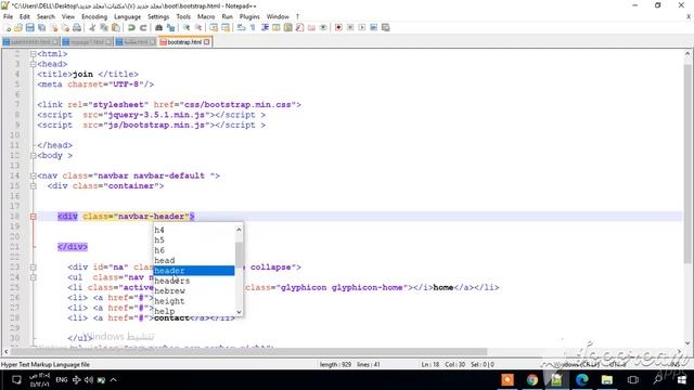 3-شرح drop down list header bootstrap and responsive page القوائم المنسدله بوت استرب.