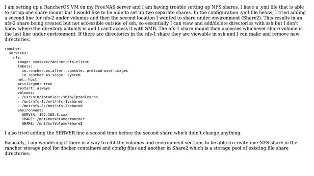 Mount multiple NFS shares in RancherOS