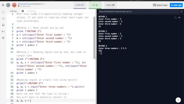 Python - How to read multiples inputs from user | How to read multiples values in one line