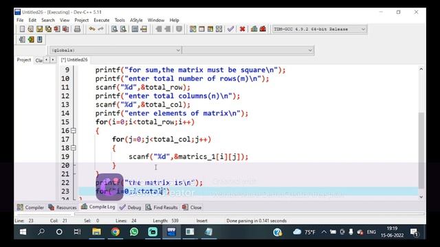 wap to calculate the sum of diagonal matrix. class 11 C Programming
