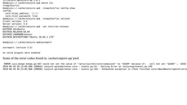 Conjure-up Kubernetes installation failed because of "/proc/sys/net/core/somaxconn" does not exist,