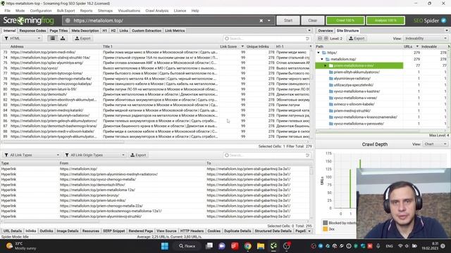 Параметр Link Score в Screaming Frog для расчёта внутреннего веса