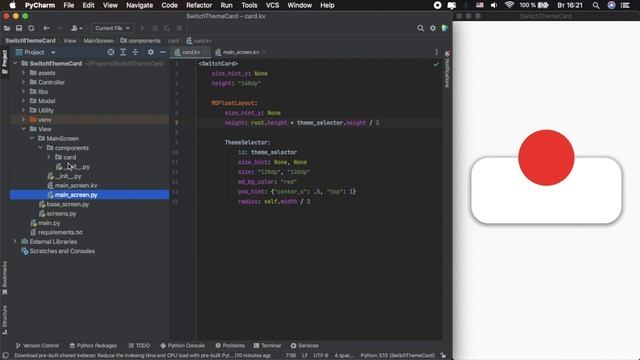 KivyMD. Application Theme Switching Card