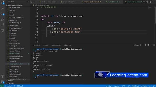 Shell Script tutorials - 45 - Select in Shell script - Select from Menu in Shellscript