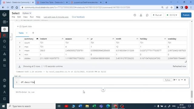 11. DataFrame Functions: Describe in Databricks|Databricks Tutorial for Beginners|Azure Databricks