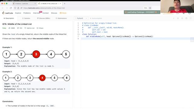 876. Middle of the Linked List - Day 28/31 Leetcode December Challenge