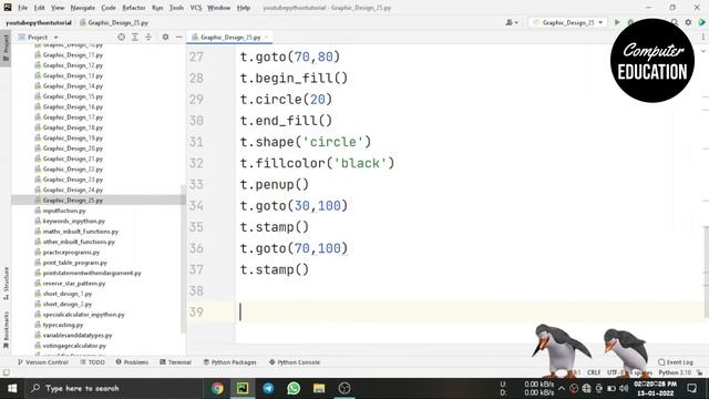 25. Python Turtle Graphic Design - Speed Code || Penguine Design
