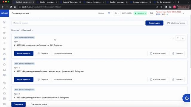 Как изменить порядок уроков и модулей курса в Salebot Course
