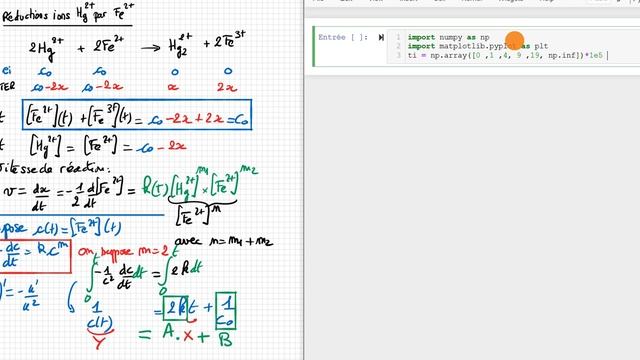 Exercice de cinétique chimique : méthode intégrale d'ordre 2 avec Numpy et polyfit)